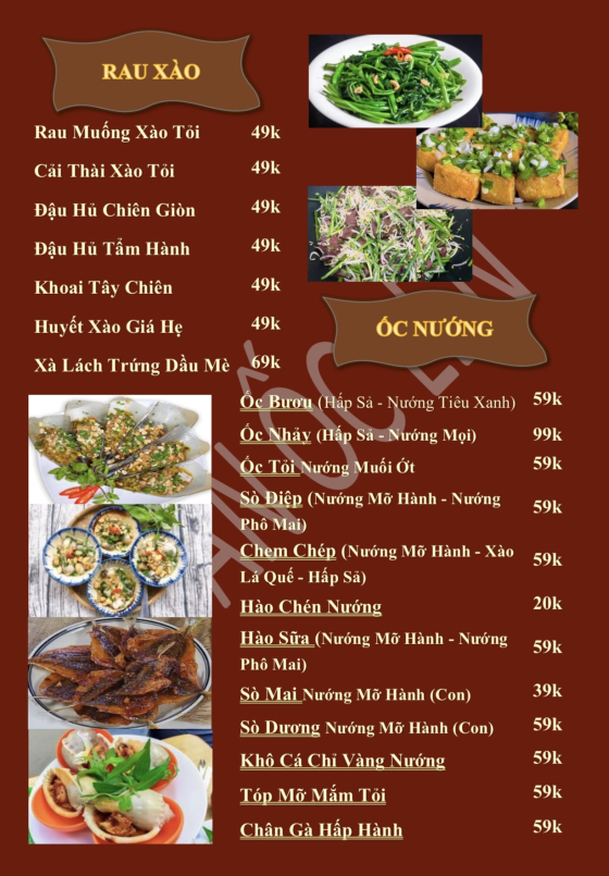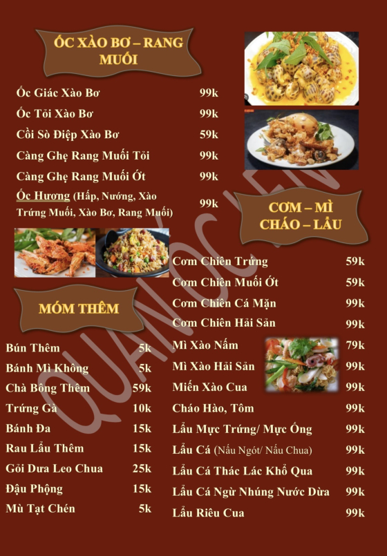 Ốc chỗ này tươi mà ngon lắm nha, menu đa dạng, giá thì học sinh, sinh viên, bữa tui ăn cùng đám bạn ăn hơn 10 món luônKhách vip